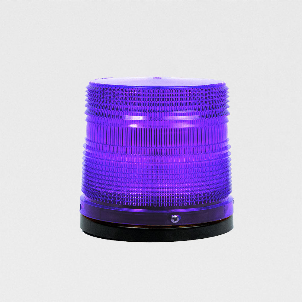 The visual signaling beacon shall be Tomar model 8024 or approved equal. The light source shall be a plug-in field replaceable xenon strobe lamp. The beacon shall have a field selectable double or quad flash rate of 68 to 72 double flashes per minute, or 58 to 62 quad flashes per minute. The warning beacon shall have a Lexan® lens and universal mount base. The DC voltage units are to have polarity protection, and must have built-in RFI filters to protect against radio interference and spike voltages. All beacons must have fully potted power supply and base. The AC units shall be designed to withstand multiple line transient spikes of 6000V without damage. The double flash beacon shall generate 17 joules, and the quad-flash beacon shall generate 25 joules. Light intensity is to be 750 effective candlepower. Voltage ranges shall be 12-28VDC, 120 VAC, and 240VAC. Strobe light shall be designed to accept a dome guard and mounting bracket